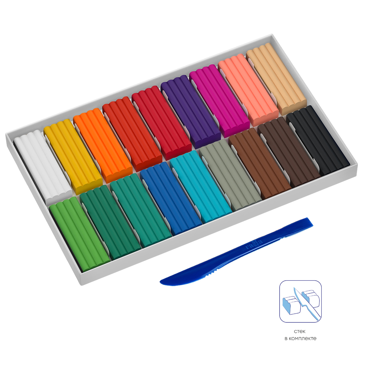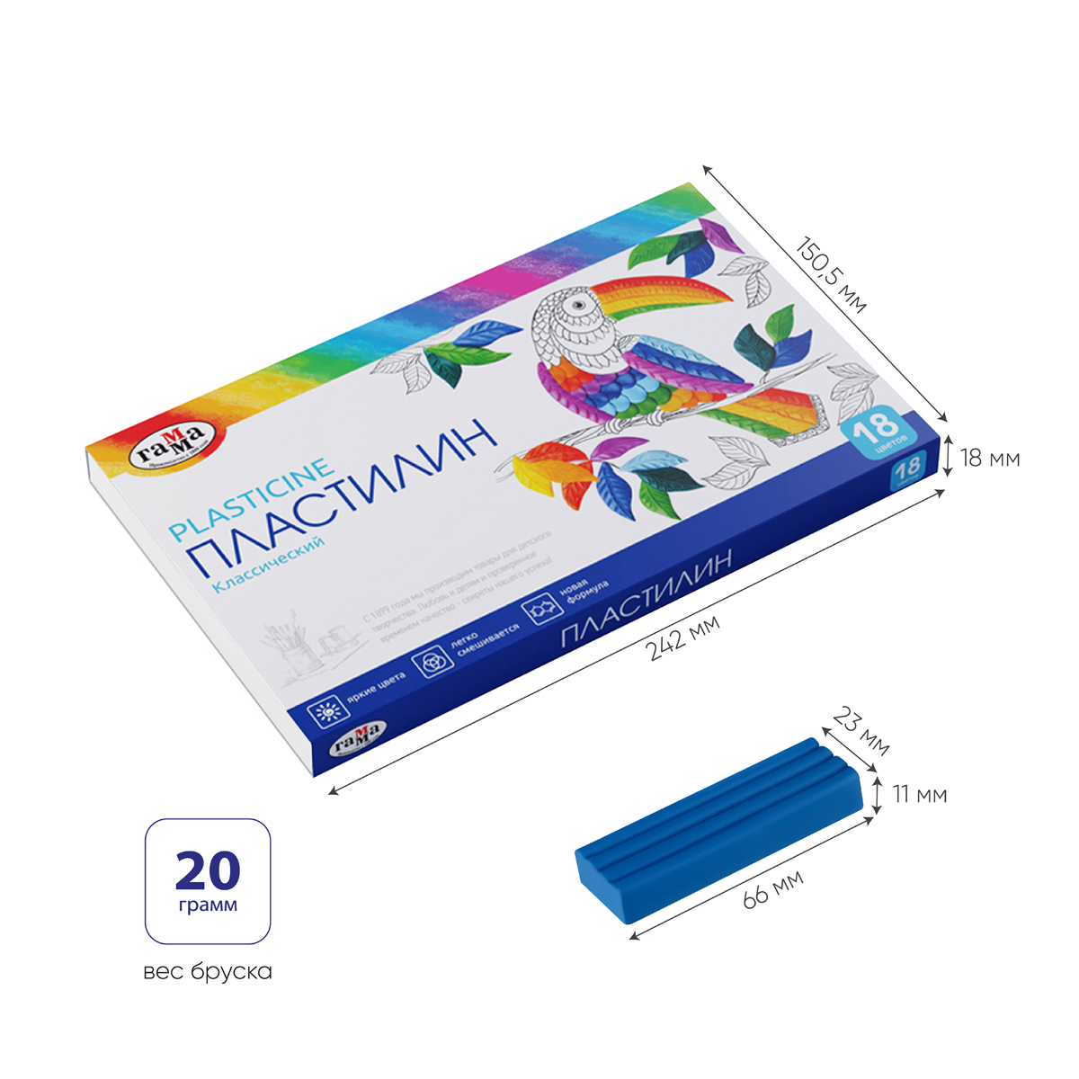 Пластилин ГАММА серии «Классическая» — это 18 брусков ярких насыщенных цветов. Пластиковый стек в комплекте. Вес одного бруска — 20 г. Пластилин разработан для детей от 7 до 12 лет. Благодаря улучшенной формуле становится эластичным при разминании, не рвётся на фракции, хорошо держит форму и позволяет лепить тончайшие детали. Прекрасно подходит для создания картин в технике пластилинографии. Не пачкает руки и рабочую поверхность.